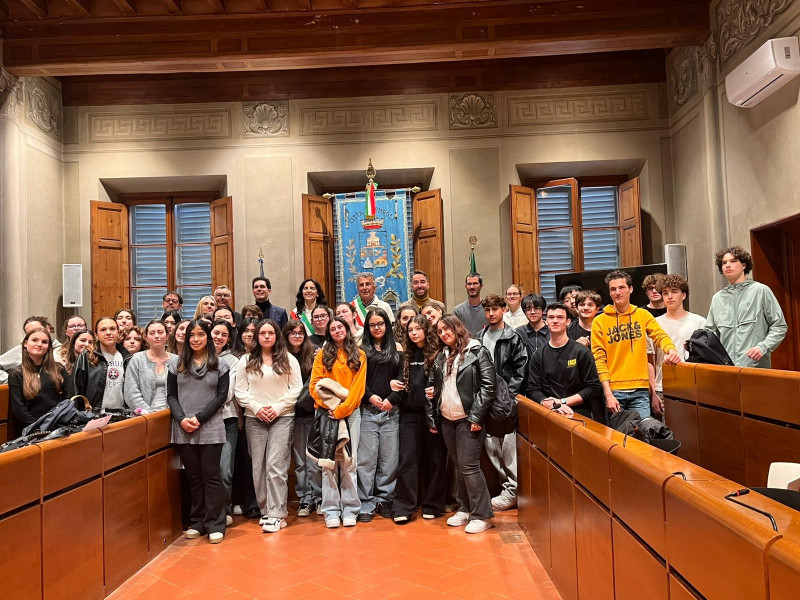 | Les lycéens reçus à la mairie d'Empoli, ont visité ensuite Florence, Vinci et Marti | |